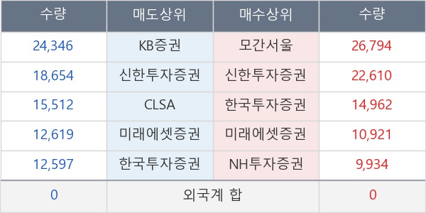[표] 외국인ㆍ기관 순매매량 (단위 주)