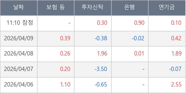 [표] 주요 기관별 순매매량 (단위 만주)