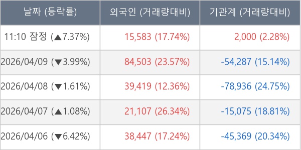 ※ 사모펀드 등 일부 기관의 순매매량은 표시되지 않음
