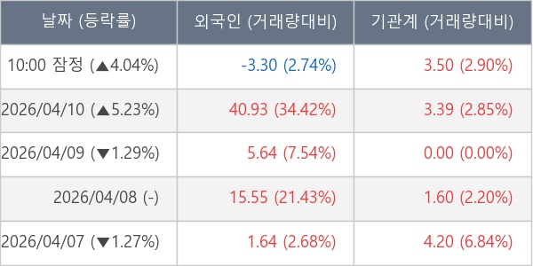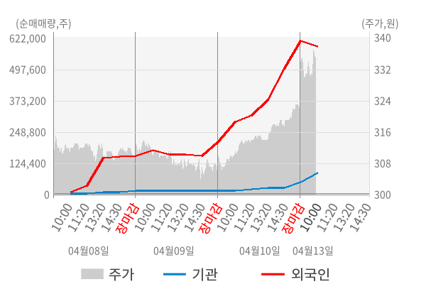 [서울=뉴스핌] 로보뉴스 = 13일 10시 15분 현재 국일제지(078130)는 전일 대비 4.04% (현재가 335원) 상승했고, 기관이 최근 6일 연속 순매수(누적 12.69만 주, 잠정) 행진을 하고 있다.