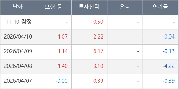 [표] 주요 기관별 순매매량 (단위 만주)