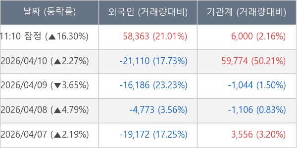 [표] 외국인ㆍ기관 순매매량 (단위 주)
