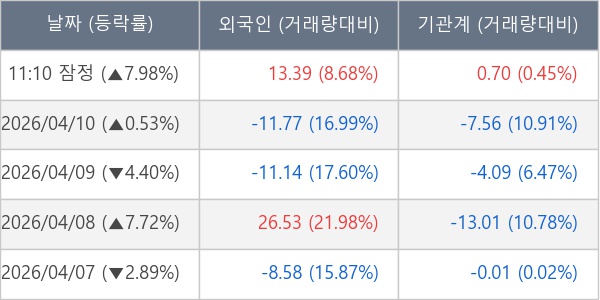 ※ 사모펀드 등 일부 기관의 순매매량은 표시되지 않음