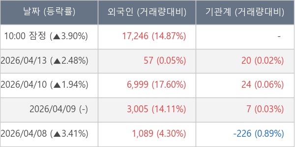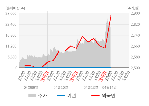 [서울=뉴스핌] 로보뉴스 = 14일 10시 15분 현재 키이스트(054780)는 전일 대비 3.90% (현재가 2,795원) 상승했고, 외국인이 최근 5일 연속 순매수(누적 28,396주, 잠정) 행진을 하고 있다.