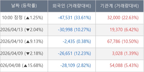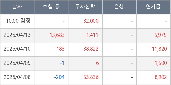 [표] 주요 기관별 순매매량 (단위 주)