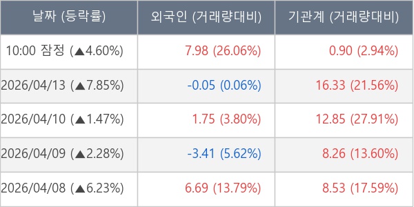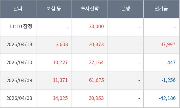 [표] 주요 기관별 순매매량 (단위 만주)