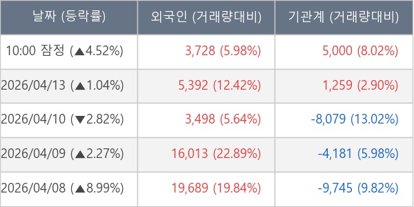 [표] 주요 기관별 순매매량 (단위 주)