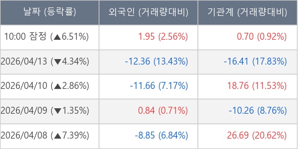 ※ 사모펀드 등 일부 기관의 순매매량은 표시되지 않음