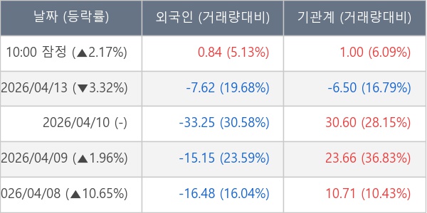 [표] 외국인ㆍ기관 순매매량 (단위 만주)