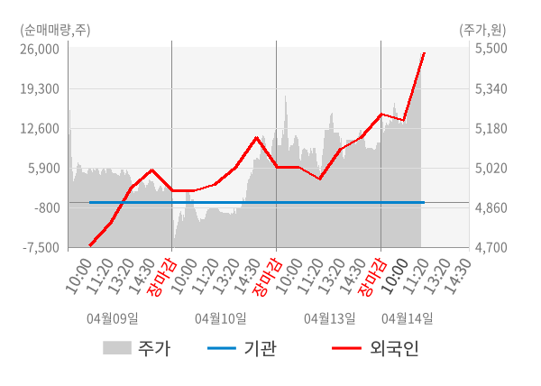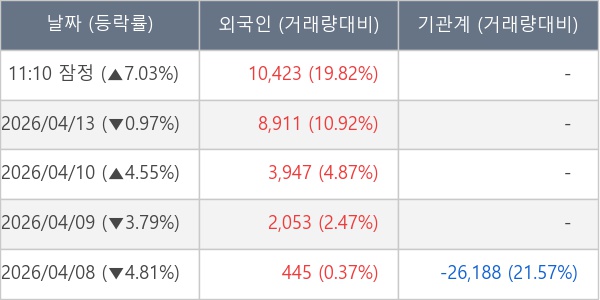[표] 외국인ㆍ기관 순매매량 (단위 주)