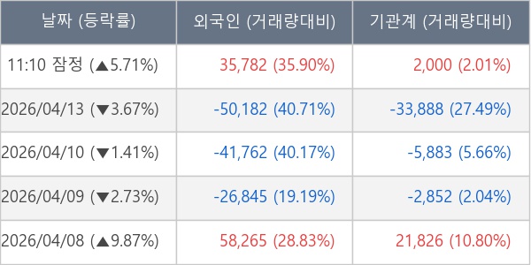 ※ 사모펀드 등 일부 기관의 순매매량은 표시되지 않음