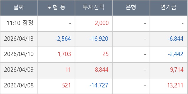 [표] 주요 기관별 순매매량 (단위 주)