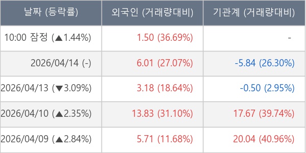 [표] 외국인ㆍ기관 순매매량 (단위 만주)