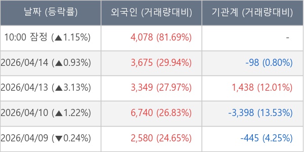 [표] 외국인ㆍ기관 순매매량 (단위 주)