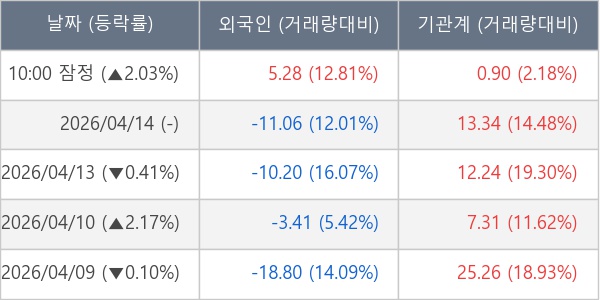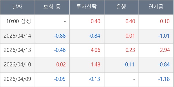 [표] 주요 기관별 순매매량 (단위 만주)