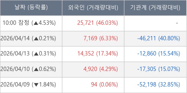 [표] 외국인ㆍ기관 순매매량 (단위 주)