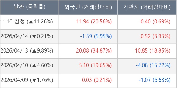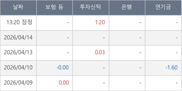 [표] 주요 기관별 순매매량 (단위 만주)