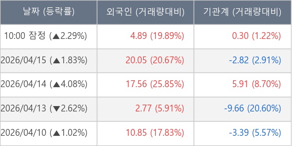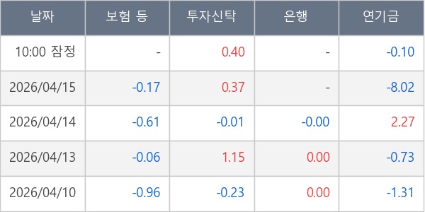 [표] 주요 기관별 순매매량 (단위 만주)