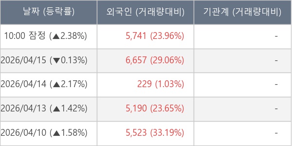 [표] 외국인ㆍ기관 순매매량 (단위 주)