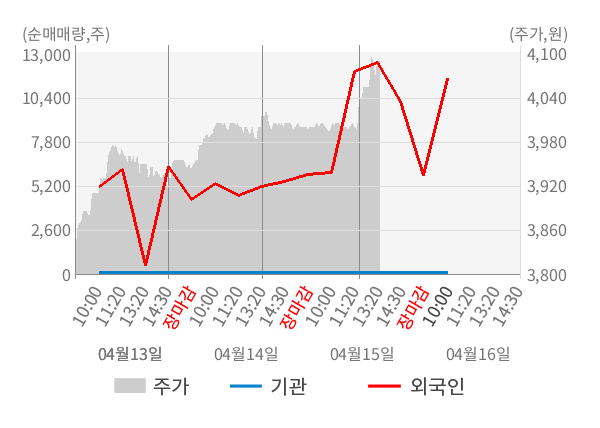 [서울=뉴스핌] 로보뉴스 = 16일 10시 15분 현재 덴티스(261200)는 전일 대비 2.38% (현재가 4,090원) 상승했고, 외국인이 최근 8일 연속 순매수(누적 26,722주, 잠정) 행진을 하고 있다.