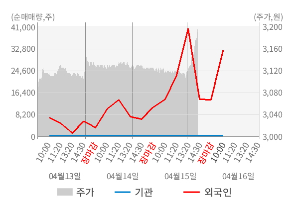 [표] 외국인ㆍ기관 순매매량 (단위 주)