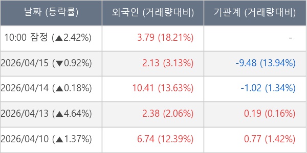 [표] 외국인ㆍ기관 순매매량 (단위 만주)