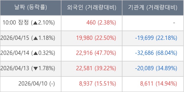 [표] 외국인ㆍ기관 순매매량 (단위 주)