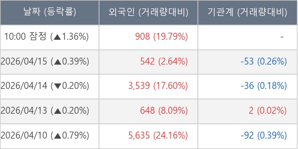 [표] 외국인ㆍ기관 순매매량 (단위 주)