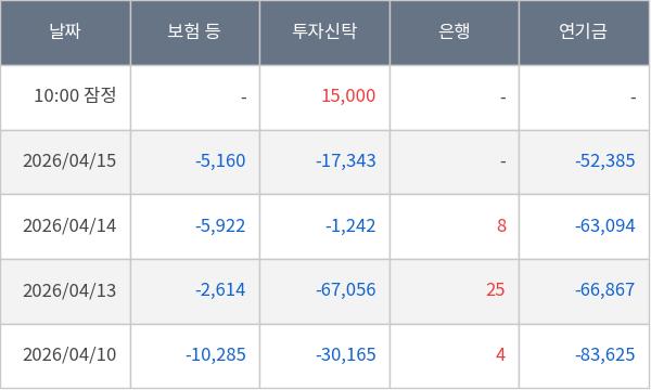 [표] 주요 기관별 순매매량 (단위 만주)