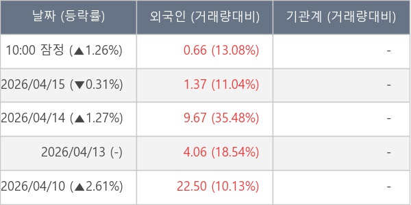 [표] 외국인ㆍ기관 순매매량 (단위 만주)