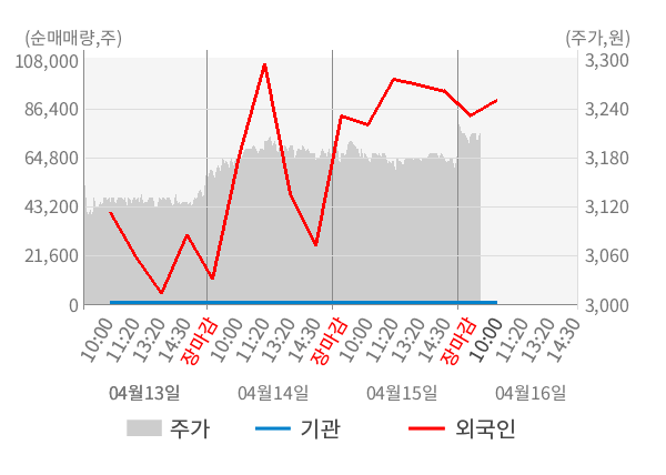 [서울=뉴스핌] 로보뉴스 = 16일 10시 15분 현재 iMBC(052220)는 전일 대비 1.26% (현재가 3,210원) 상승했고, 외국인이 최근 5일 연속 순매수(누적 38.26만 주, 잠정) 행진을 하고 있다.
