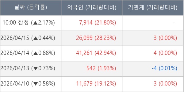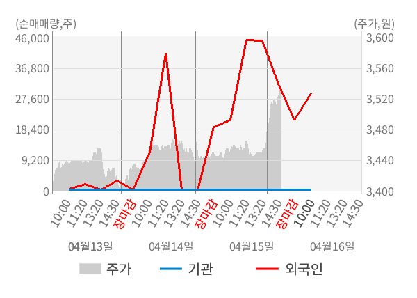 [표] 외국인ㆍ기관 순매매량 (단위 주)