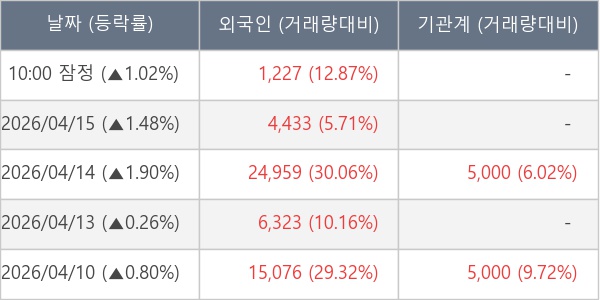 [서울=뉴스핌] 로보뉴스 = 16일 10시 15분 현재 핑거스토리(417180)는 전일 대비 1.02% (현재가 1,592원) 상승했고, 외국인이 최근 5일 연속 순매수(누적 52,018주, 잠정) 행진을 하고 있다.