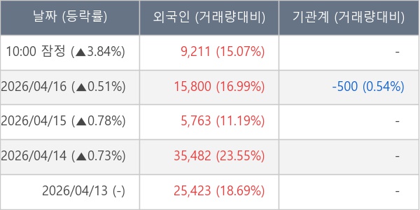 [표] 외국인ㆍ기관 순매매량 (단위 주)