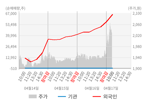 [서울=뉴스핌] 로보뉴스 = 17일 10시 15분 현재 홈캐스트(064240)는 전일 대비 3.84% (현재가 2,030원) 상승했고, 외국인이 최근 7일 연속 순매수(누적 12.70만 주, 잠정) 행진을 하고 있다.
