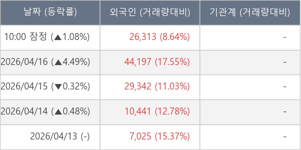 [표] 외국인ㆍ기관 순매매량 (단위 주)