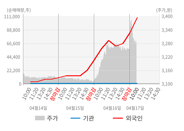 [서울=뉴스핌] 로보뉴스 = 17일 10시 15분 현재 오상자이엘(053980)은 전일 대비 1.08% (현재가 3,290원) 상승했고, 외국인이 최근 7일 연속 순매수(누적 15.83만 주, 잠정) 행진을 하고 있다.