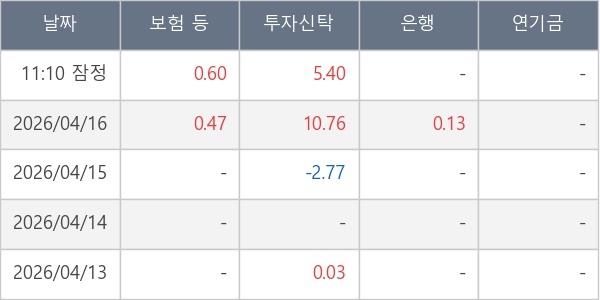 [표] 주요 기관별 순매매량 (단위 만주)