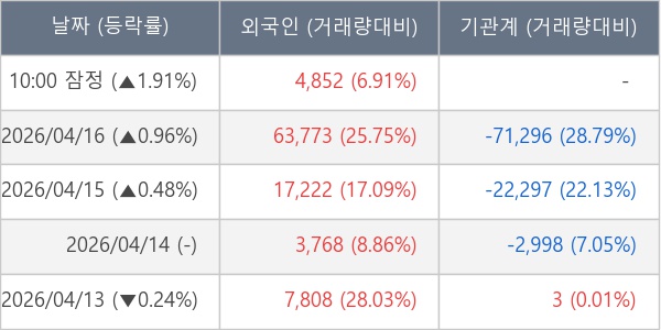 [표] 외국인ㆍ기관 순매매량 (단위 주)