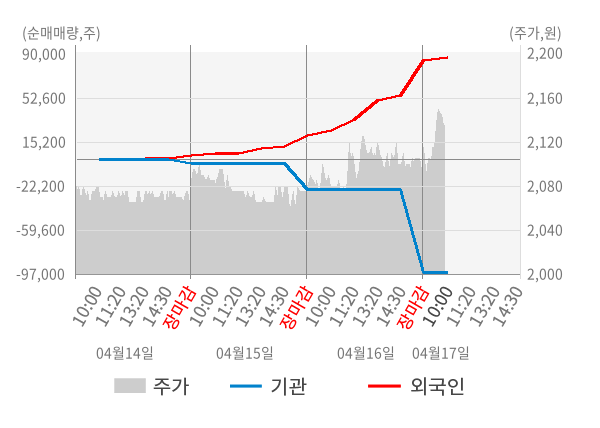 [서울=뉴스핌] 로보뉴스 = 17일 10시 15분 현재 로젠(033290)은 전일 대비 1.91% (현재가 2,135원) 상승했고, 외국인이 최근 9일 연속 순매수(누적 12.29만 주, 잠정) 행진을 하고 있다.