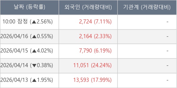 [표] 외국인ㆍ기관 순매매량 (단위 주)