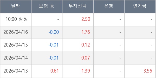 [표] 주요 기관별 순매매량 (단위 만주)