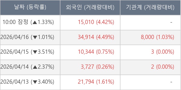 [표] 외국인ㆍ기관 순매매량 (단위 주)
