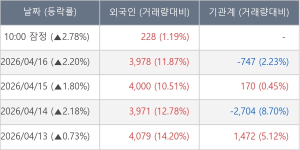 [표] 외국인ㆍ기관 순매매량 (단위 주)