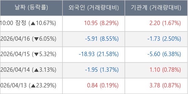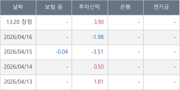[표] 주요 기관별 순매매량 (단위 만주)