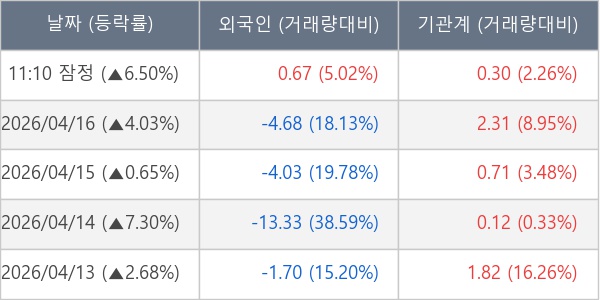 ※ 사모펀드 등 일부 기관의 순매매량은 표시되지 않음