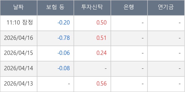 [표] 주요 기관별 순매매량 (단위 만주)