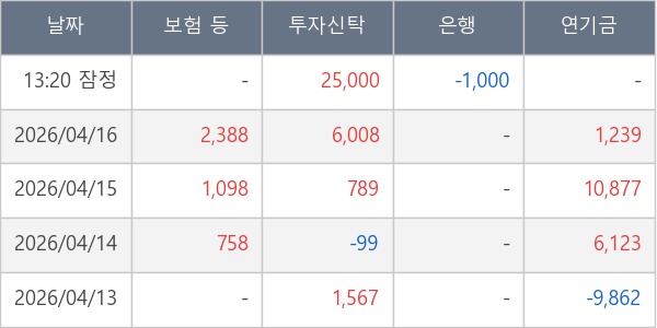 [표] 주요 기관별 순매매량 (단위 주)