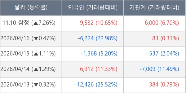 ※ 사모펀드 등 일부 기관의 순매매량은 표시되지 않음