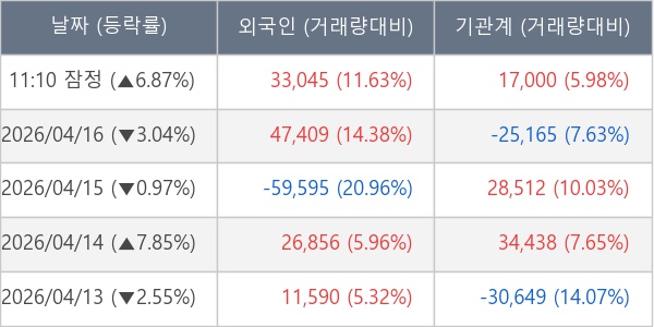※ 사모펀드 등 일부 기관의 순매매량은 표시되지 않음